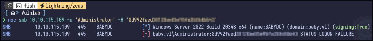 It fails however as it is a local administrator hash and the machine is a Domain Controller, which is not a valid combination - you cannot use the local admin hash on a DC.
