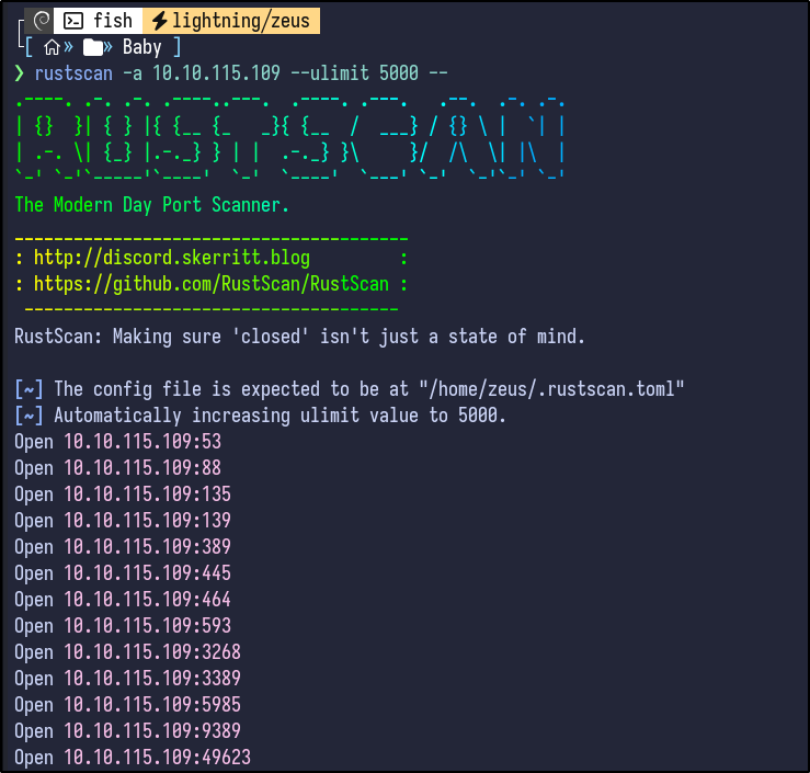 rustscan -a 10.10.115.109 --ulimit 5000 --