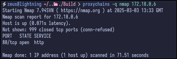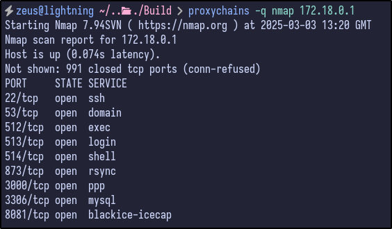 Now, internal devices such as 172.18.0.1 should be reachable which can be tested by running Nmap against 172.18.0.1: