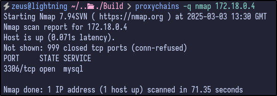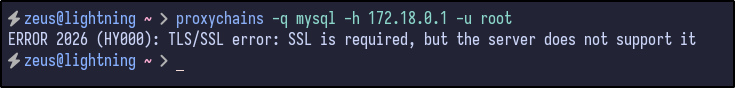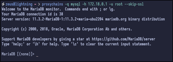 proxychains -q mysql -h 172.18.0.1 -u root --skip-ssl