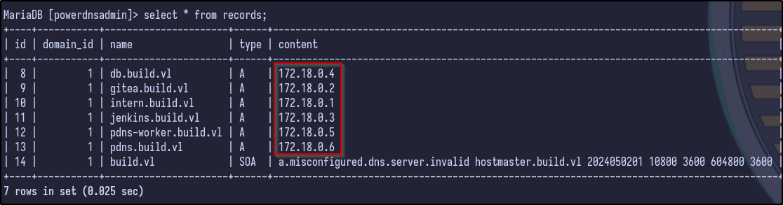 172.18.0.4 only had the MySQL port open which we already grabbed the PowerDNS admin hash from: