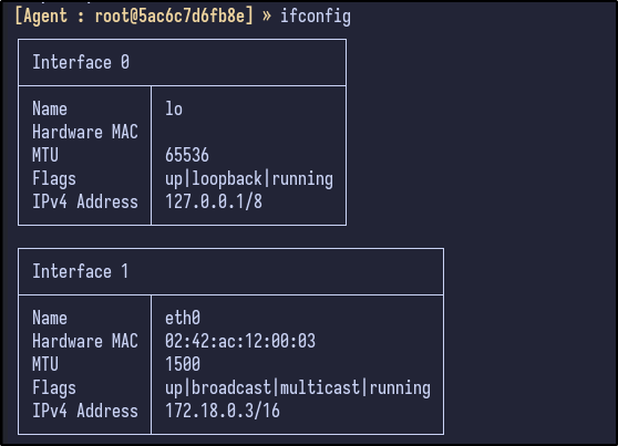The network config tells us that there is a 172.18.0.0/16 network running. With this, it can be added as a route by going through the Ligolo network interface: