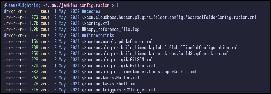 After extracting via the tar -xvf jenkins.tar.gz command, a jenkins_configuration directory is created, containing a ton of files: