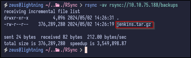 rsync -av rsync://10.10.75.188/backups .