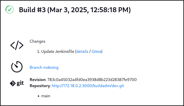 Checking the contents, we can see that the changes made to this were when we updated the Jenkinsfile within the Github repository to initially gain access to the machine: