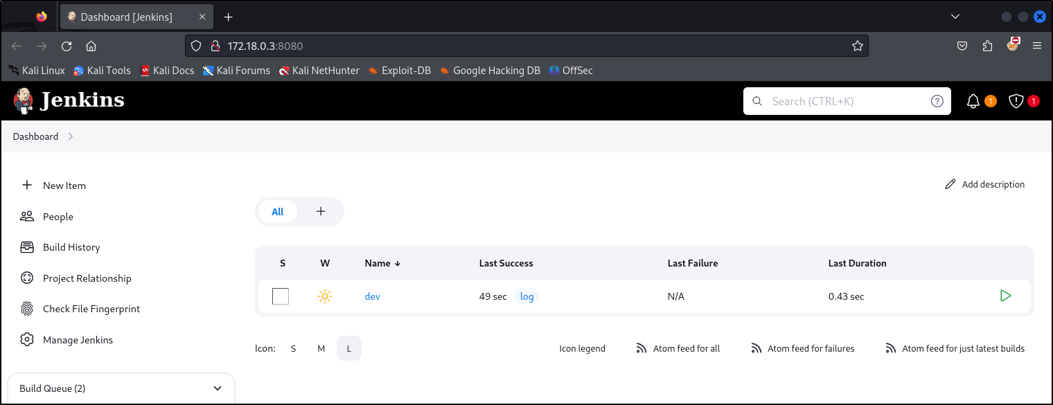Looking further into some of the open ports, the 172.18.0.3 host was operating the Jenkins instance on port 8080 which contained the same dev repository/name seen in the Gitea instance: