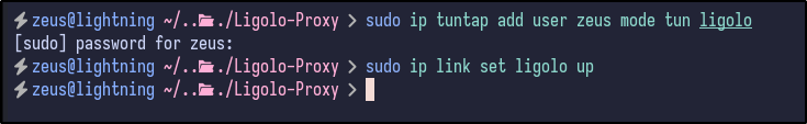 sudo ip tuntap add user zeus mode tun ligolo