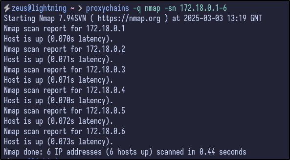 proxychains -q nmap -sn 172.18.0.1-6