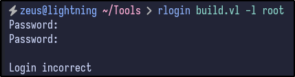 Attempting to login via the rlogin service proves unsuccessful without providing a correct password or username: