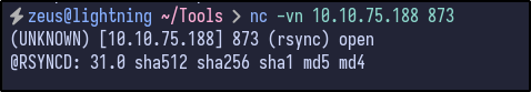 However, Rsync provides some more information. Attempting to connect to port 873 with Netcat results in a banner being returned: