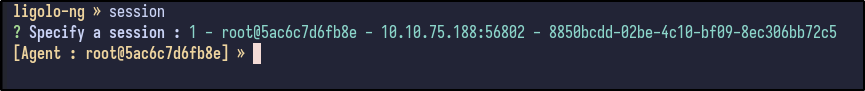 A new session will appear in Ligolo which can be connected to by running the session command and hitting Enter: