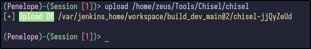 Since Ligolo was not working, Chisel was set up instead by first transferring the file over using the upload command from Penelope: