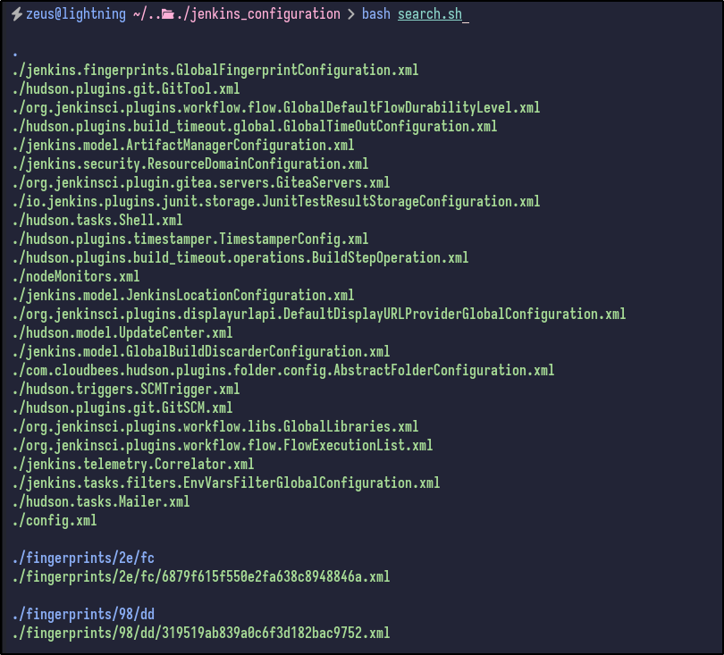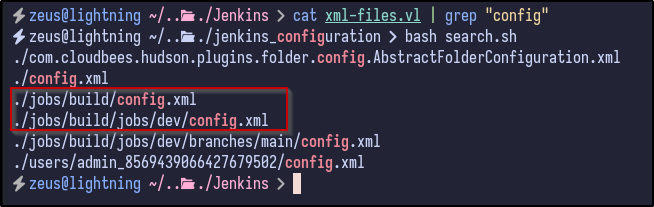 Searching for more “config.xml” files reveals a config file within the jobs/build directory as well as an interesting file in the users directory:
